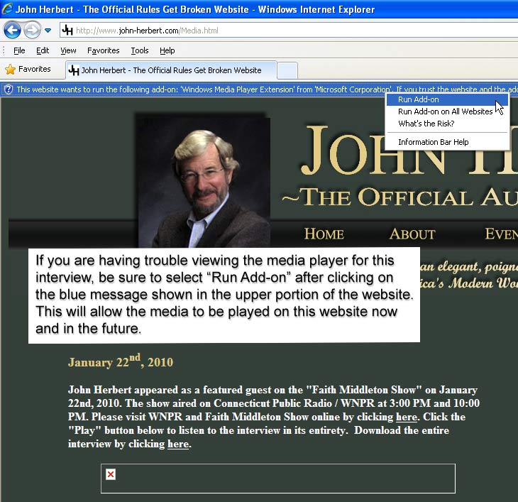 January 22nd, 2010 John Herbert appeared as a featured guest on the "The Faith Middleton Show" on January 22nd, 2010. The show aired on Connecticut Public Radio / WNPR at 3:00 PM and 10:00 PM. Please visit WNPR and The Faith Middleton Show online by clicking here. Click the "Play" button below to listen to the interview in its entirety. Download the entire interview by clicking here. Episode: "A story of an unexpected loss and love"